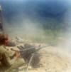 An unknown soldier firing a 50 cal. machinegun