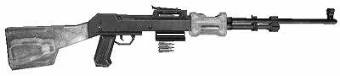 gas-operated, integral box magazine-fed rifle equipped with a